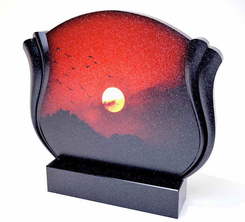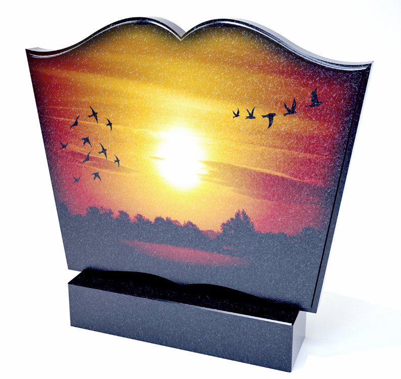 Последнее время в мемориальной сфере стало все больше появляться предложений по нанесению цветности на гранит. Технологии не стоят на месте из-за чего на кладбищах стали появляться очень красиво оформленные мемориальные комплекты. Особенно эффектно смотрятся силуэтные пейзажи на обратной стороне памятников. Такие рисунки смотрятся лаконично и эффектно. Самое важное-это то, что для нанесения цветности не требуется большого количества оттенков. На представленных памятниках преобладают оттенки красного и желтого.